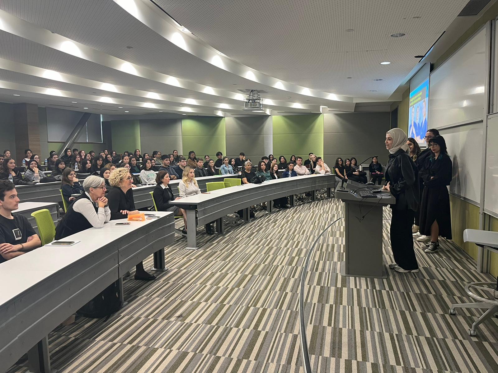 Hemşirelik Bölümü öğretim üyesi Prof. Dr. Esra Uğur danışmanlık sistemi, sınıf koordinatörlüğü ve sınıf temsilcileri hakkında bilgilendirerek, akademik süreçlerde nasıl destek alabileceklerini açıkladı. Programın ilerleyen bölümünde, üst sınıfların öğrenci temsilcileri söz alarak, eğitim süreçlerinde yaşadıkları tecrübeleri ve öğrenci temsilciliği görevindeki sorumluluklarını paylaştılar. Yeni öğrenciler, bu sayede hem akademik hem de sosyal anlamda nasıl bir yol izleyebilecekleri konusunda fikir sahibi oldular.