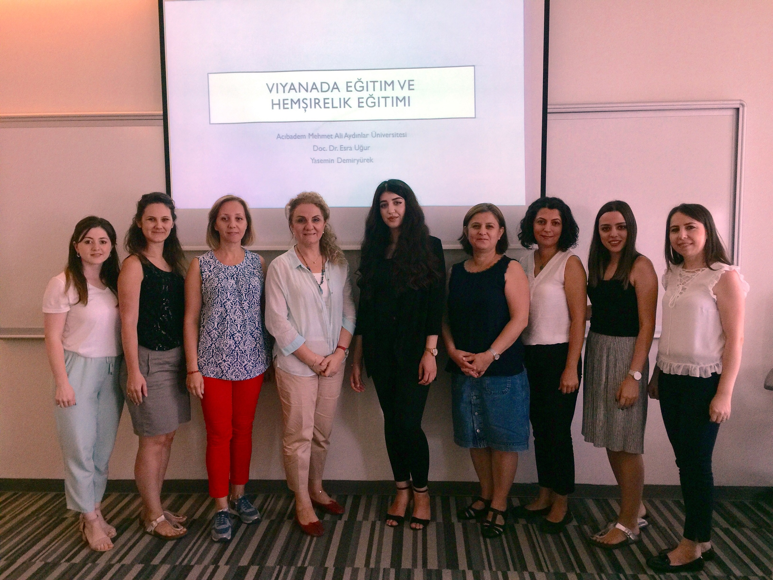 Hemşirelik Bölümü öğretim elemanları ile 3 Ağustos 2018 tarihinde Kerem Aydınlar Kampüsü’nde bir araya gelen Yasemin Demiryürek, Avusturya’daki eğitim sistemi, hemşirelik eğitimi ve çalışma koşullarına ilişkin bir sunum gerçekleştirdi.