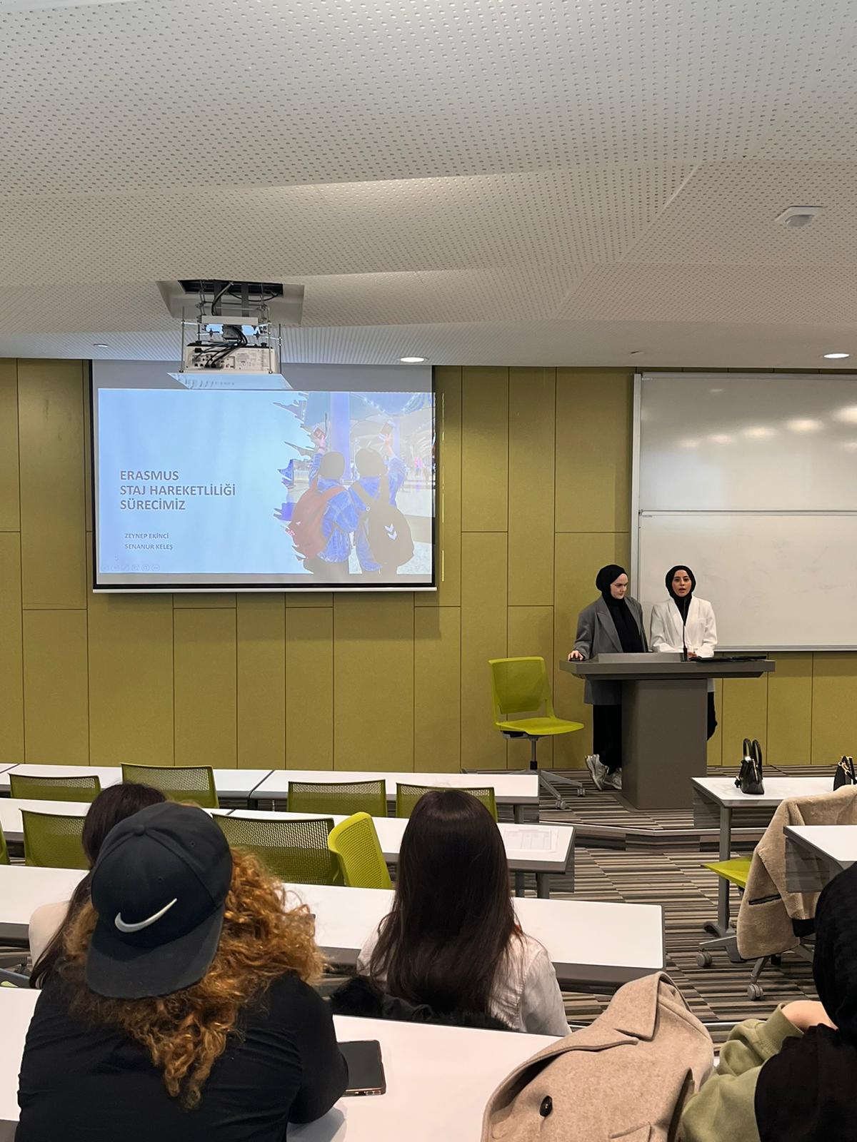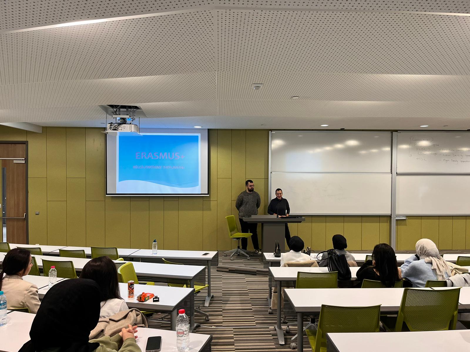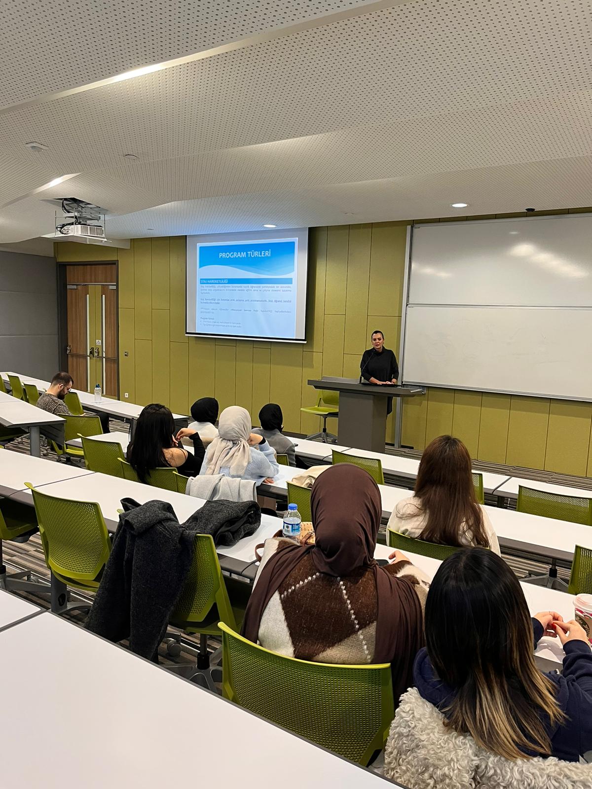 Hemşirelik Bölümü öğrencilerinin Erasmus Öğrenim Hareketliliği ve Staj Hareketliliği hakkında bilgilendirilmesi amacıyla, Sosyal ve Bilimsel Etkinlik Komisyonu ile Uluslararası Öğrenci ve Akademik İlişkiler Ofisi işbirliğinde “Erasmus Bilgilendirme Toplantısı ve Deneyim Paylaşımı “etkinliği 9 Aralık 2024 tarihinde düzenlendi. Etkinlik, Hemşirelik Bölüm Başkanı Prof. Dr. Ükke Karabacak’ın açılış konuşmasıyla başladı. Moderatörlüğünü Arş. Gör. Nergis Durukan’ın yaptığı etkinlikte, Uluslararası Öğrenci ve Akademik İlişkiler Ofisi Koordinatörü Gönülden Müjde Başar, “Erasmus + Bilgilendirme Toplantısı” başlıklı sunumunu gerçekleştirerek Erasmus Öğrenim Hareketliliği ve Staj Hareketliliği hakkında detaylı bilgi verdi. Sunumda, öğrencilere Erasmus süreçleriyle ilgili önemli bilgiler sunulurken, katılımcıların soruları da yanıtlandı. Etkinliğin ikinci bölümünde, Erasmus Staj Hareketliliği’ne katılan Hemşirelik Bölümü mezunları Zeynep Ekinci ve Senanur Keleş, “Erasmus+ Staj Hareketliliği Sürecimiz” başlıklı konuşmalarını yaparak deneyimlerini paylaştı. Mezunlar, Erasmus staj süreçlerinin kendilerine kazandırdığı kişisel ve profesyonel gelişim fırsatlarını vurguladılar. Toplantı, 158 Hemşirelik Bölümü lisans öğrencisi ve 11 öğretim elemanının katılımıyla hibrit olarak gerçekleştirildi. İnteraktif bir şekilde devam eden etkinlik, öğrencilerin ve öğretim elemanlarının sorularının yanıtlanmasıyla son buldu. Bu etkinlik, öğrencilerin Erasmus fırsatları hakkında daha fazla bilgi edinmelerini sağlarken, aynı zamanda mezunların deneyimlerinden yararlanarak, Erasmus süreçlerine katılmayı düşünen öğrencilere ilham verdi.