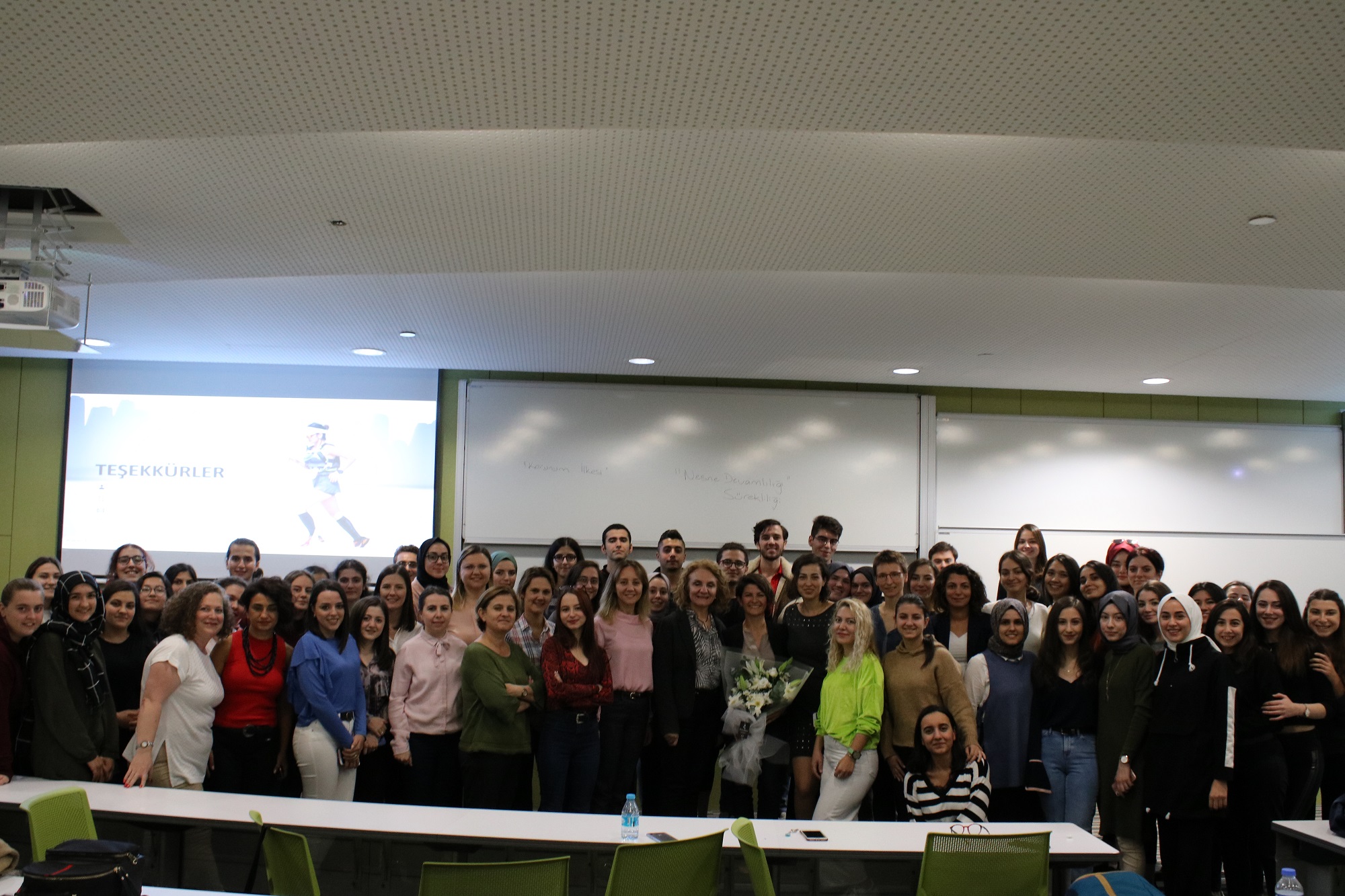 Sağlık Bilimleri Fakültesi Hemşirelik Bölümümüz, Hemşirelikte Profesyonellik Geliştirme Seminerleri kapsamında Uzm. Hemşire Hanife Ebru Dönmez’i ağırladı.Hemşirelik Bölümümüz tarafından rutin olarak düzenlenen Hemşirelikte Profesyonellik Geliştirme Seminerleri kapsamında "Hemşire: Toplum Gönüllüsü ve Sporcu Kimliği ile" başlıklı söyleşi 30 Ekim 2019 tarihinde gerçekleşti. Uzm. Hemşire Hanife Ebru Dönmez, öğrencilere mesleki kimliğin bireysel özellikler ile birleştirildiğinde toplum yararına faaliyetlere çevrilebildiğinden ve bireysel faydanın toplumsal faydaya dönüştürülebilme yollarından bahsetti.. Hemşireliğin doğasında var olan bireyin ve toplumun iyiliğini gözetme amacının hemşirenin bireysel öncelikleri ile birleştirilebileceğine dair önerilerde bulundu. Dönmez, hemşire kimliğinin kazandırdığı niteliklerin bireysel hayatta nasıl uygulanabileceği ve iyi bir hemşire olmanın başarılı bir spor hayatına katkılarından örnekler verdi.Konuşmacı hakkında: Konuşmacı Uzman Hemşire Hanife Ebru Dönmez, Koç Üniversitesi’nde lisans eğitimini, İstanbul Üniversitesi Halk Sağlığı Hemşireliği ana bilim dalında yüksek lisans eğitimini tamamlamıştır. Halen Amerikan Hastanesi Enfeksiyon Kontrol Hemşiresi olarak çalışan Ebru Dönmez, uzun mesafe koşu ve bisiklet alanlarında başarılı bir sporcudur. Sporcu kimliğini toplumsal duyarlılık çerçevesinde değerlendiren konuşmacı aynı zamanda Kanser Savaşçıları Derneği’nin yönetim kurulunda yer almaktadır.