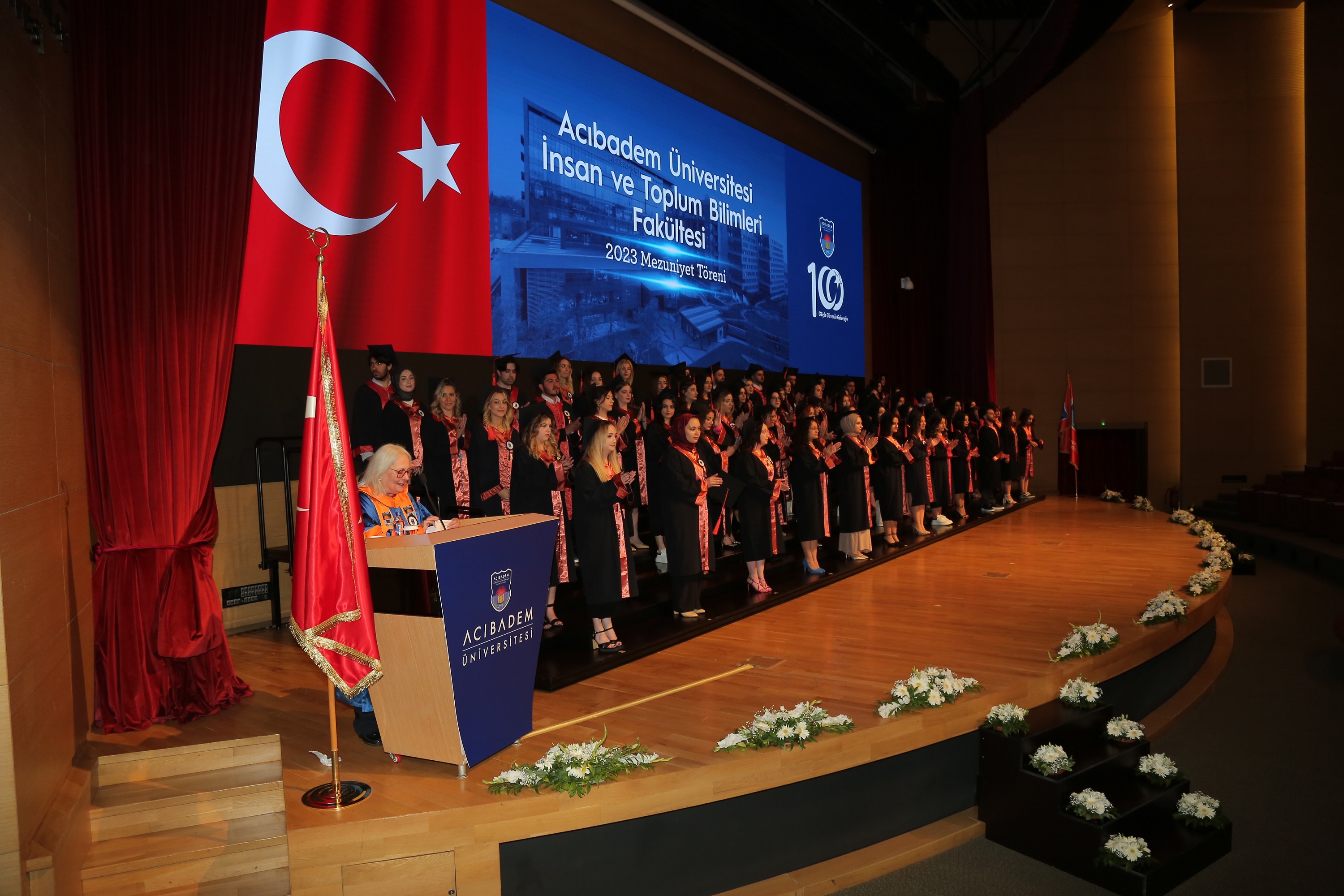 İnsan ve Toplum Bilimleri Fakültesi Dekanı Prof. Dr. İnci User’ın açılış konuşması ile başlayan törende, Rektör Prof. Dr. Ahmet Şahin konuşması ile mezunlarımıza profesyonel hayatlarında başarılar diledi. Fakülte birincisi Ayşe Eslem Görkan fakülteyi temsilen konuşmasını yaptı. Törenlerde, bölümlerinde ilk üç dereceye giren mezunlarımıza başarı beratları Rektörümüz Prof. Dr. Ahmet Şahin, Rektör Yardımcımız Prof. Dr. İrfan Güney ve Dekanımız Prof. Dr. İnci User tarafından takdim edildi.