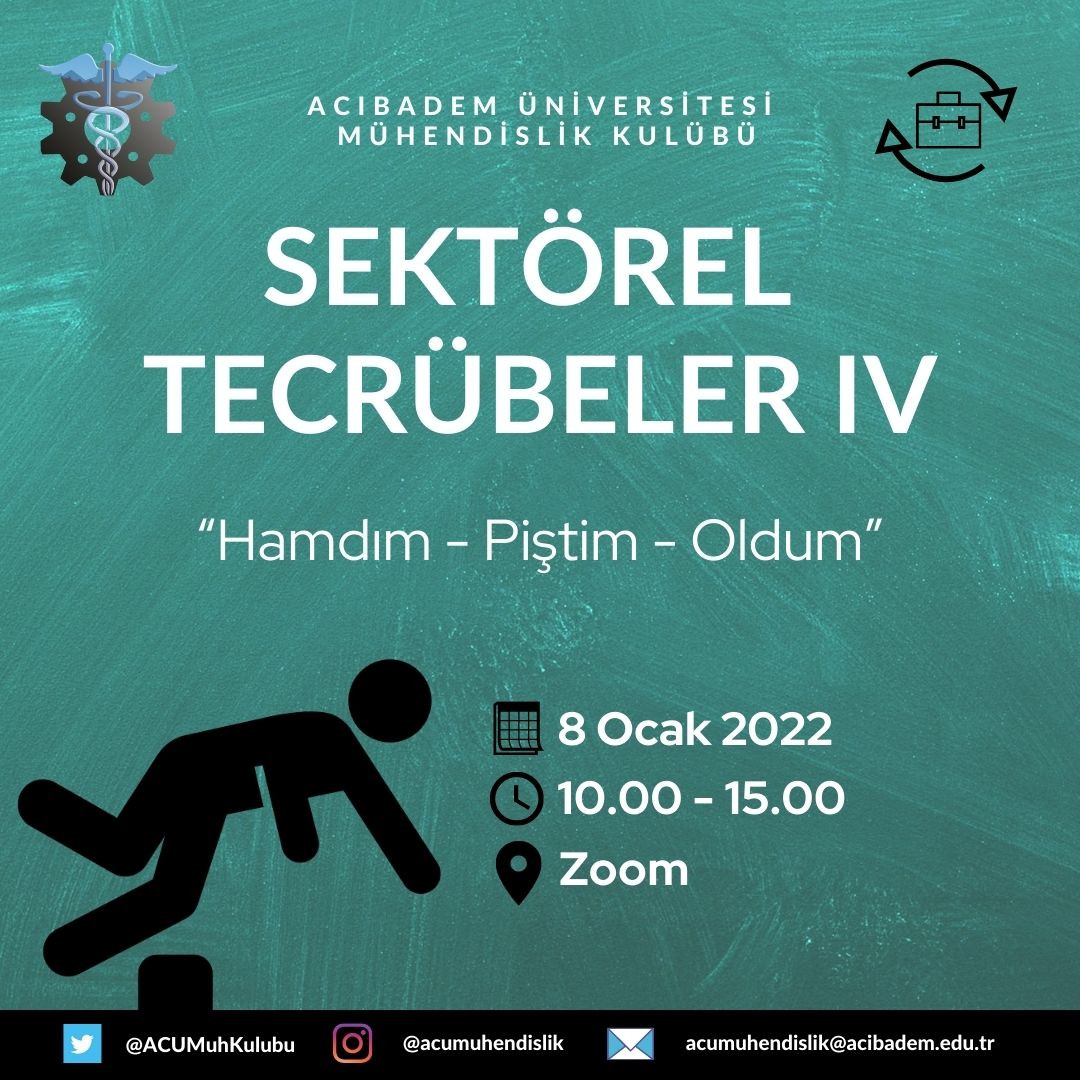 Mühendislik Kulübümüzün 8 Ocak 2022 tarihinde düzenlediği “Sektörel Tecrübeler IV” başlıklı etkinlik; alanında uzman birçok konuşmacıyı ağırladı. Etkinlik, Finans Koordinatörü Mete Kıldacı moderatörlüğünde ki Startup Wise Guys ortağı Günce Önür’ün “Girişimcilik Yolunda Finansman ve Yatırım Yönetimi” adlı söyleşisi ile başladı. Üniversitemiz Tıp Fakültesi 2020 mezunlarında Dr. Tahir Koray Yozgatlı’nın “Acıbademli Bir Girişimcinin Öyküsü” başlıklı söyleşisi ile devam eden etkinlikte, Netkent Akdeniz Araştırma ve Bilim Üniversitesi Yabancı Dil Bölüm Başkanı Mustafa Cem Pehlivan ve DESNET CEO’su Ömer Ekinci yaşam hikayelerini, deneyimlerini katılımcılarla paylaştı. Etkinliğe katılan tüm konuşmacılar; tecrübelerinden, karşılaştıkları zorluklardan bahsederken girişimcilikte başarıya giden yolun her zaman kolay olmayacağını, çalışma ve kararlılık ile yolculuğa devam edilmesi gerektiğini vurguladı. Etkinliği YouTube’dan izlemek için tıklayın.
