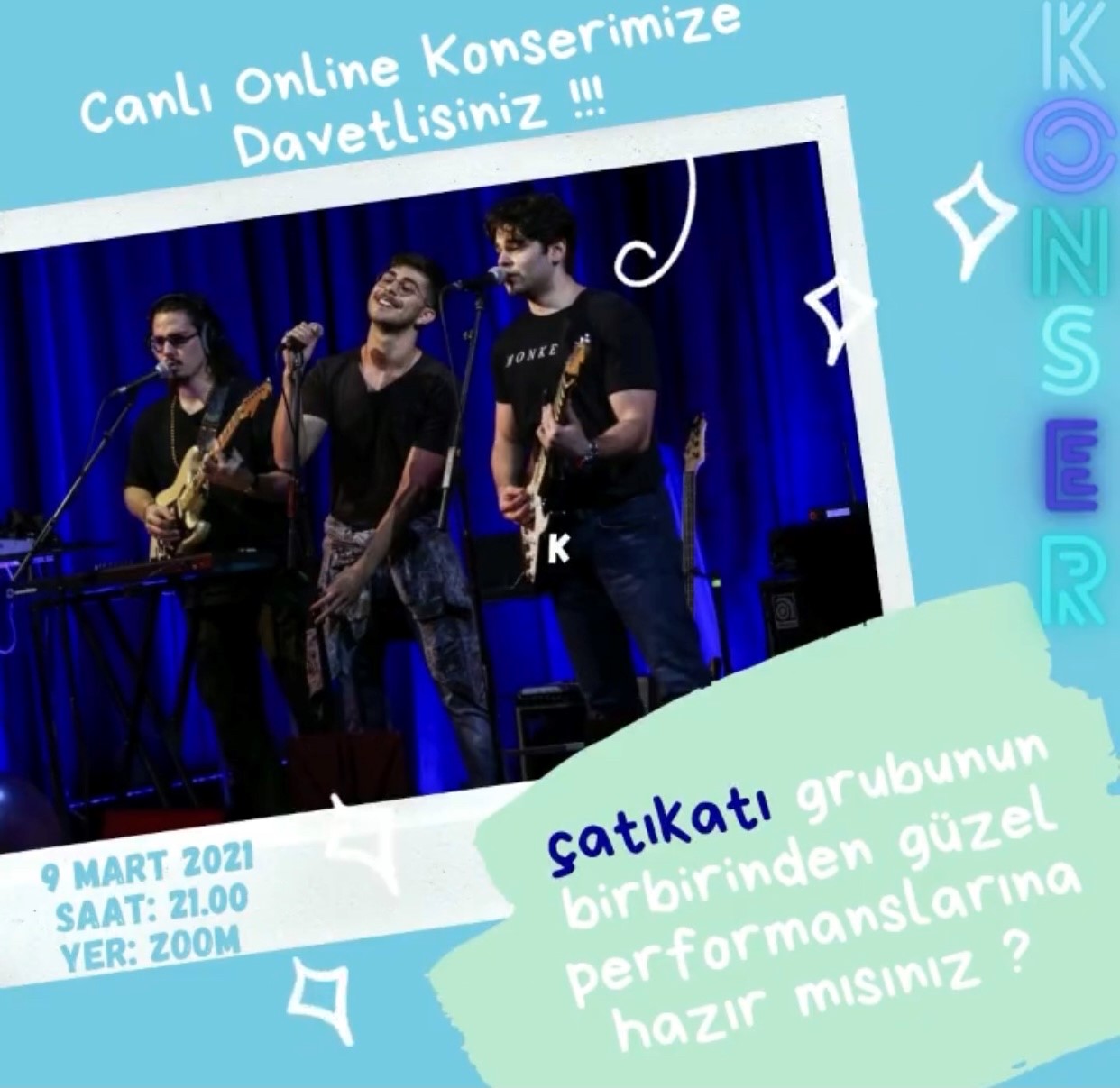 Etkinlik, pandemi günlerinde biraz olsun bu zor süreçten uzaklaşmak, özlenen konser günlerini biraz olsun yaşatmak amacıyla Çatıkatı Grubu’nun katılımıyla 9 Mart 2021 tarihinde çevrimiçi olarak gerçekleşti.Konser aralarında grup üyeleri katılımcıların sorularını da cevapladı.