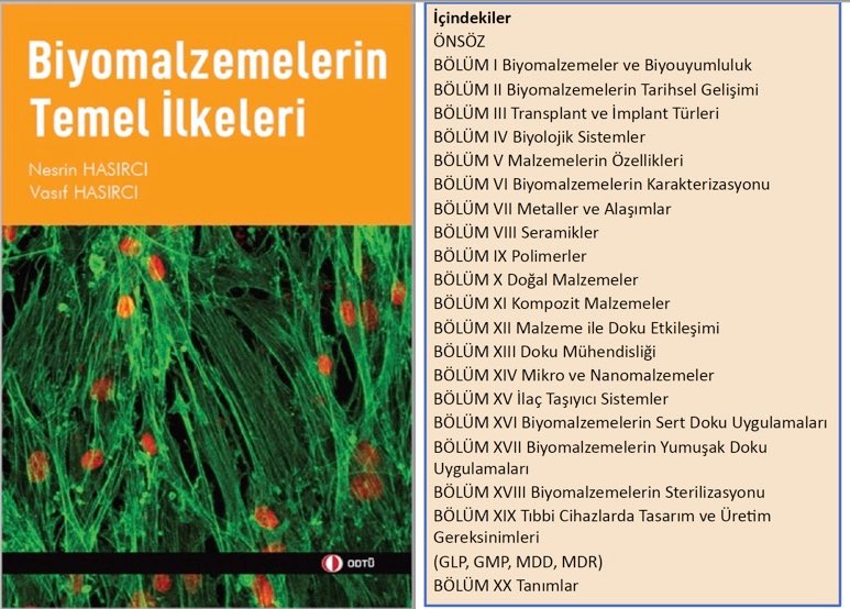 Prof. Dr. Nesrin Hasırcı ve Prof. Dr. Vasıf Hasırcı tarafından kaleme alınan ve 2018 yılında Springer Nature tarafından dağıtımı yapılan "Fundamentals of Biomaterials" kitabı temel alınarak, bu ay içinde Türkçe ders kitabı olarak ekleriyle birlikte basılmıştır.