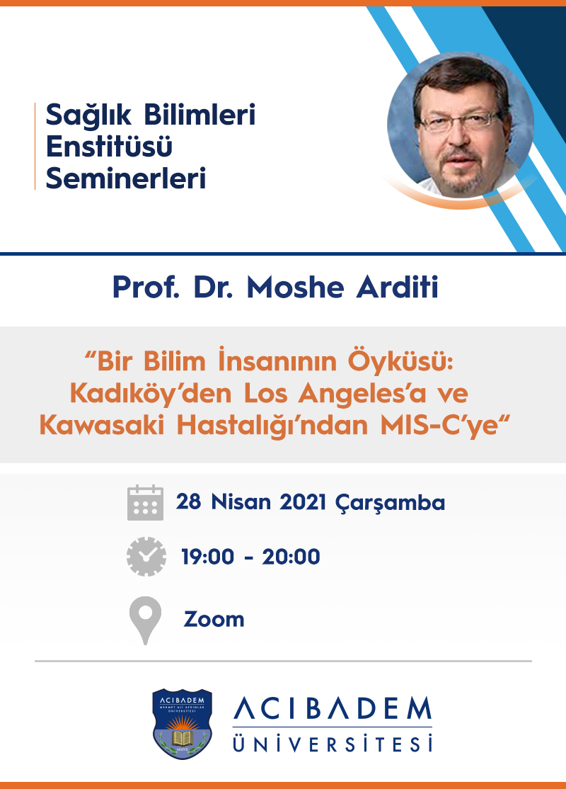 Sağlık Bilimleri Enstitüsü tarafından düzenlenen seminer dizisinin konuğu UCLA David Geffen Tıp Fakültesi Pediatri Uzmanı Prof. Dr. Moshe Arditi idi. “Bir Bilim İnsanının Öyküsü: Kadıköy’den Los Angeles’a ve Kawasaki Hastalığı’ndan MIS-C’ye” başlıklı webinar 28 Nisan 2021 tarihinde gerçekleşti.Enstitü tarafından düzenli olarak gerçekleştirilen bu etkinlik lisansüstü öğrencileriyle onlara ilham ve rol model olabilecek bilim insanlarını bir araya getiriyor. Katılımcılar, bilim insanlarının yaşam öykülerini dinlerken yaptıkları bilimsel çalışmalar hakkında da bilgi sahibi oluyor. Etkinlik girişimcilik-liderlik, kişisel gelişim, sivil toplum hizmetleri-sosyal sorumluluk temalarında da öncü konukları öğrencilerle buluşturuyor.Prof. Dr. Moshe Arditi ile ilgili detaylı bilgi için tıklayın.