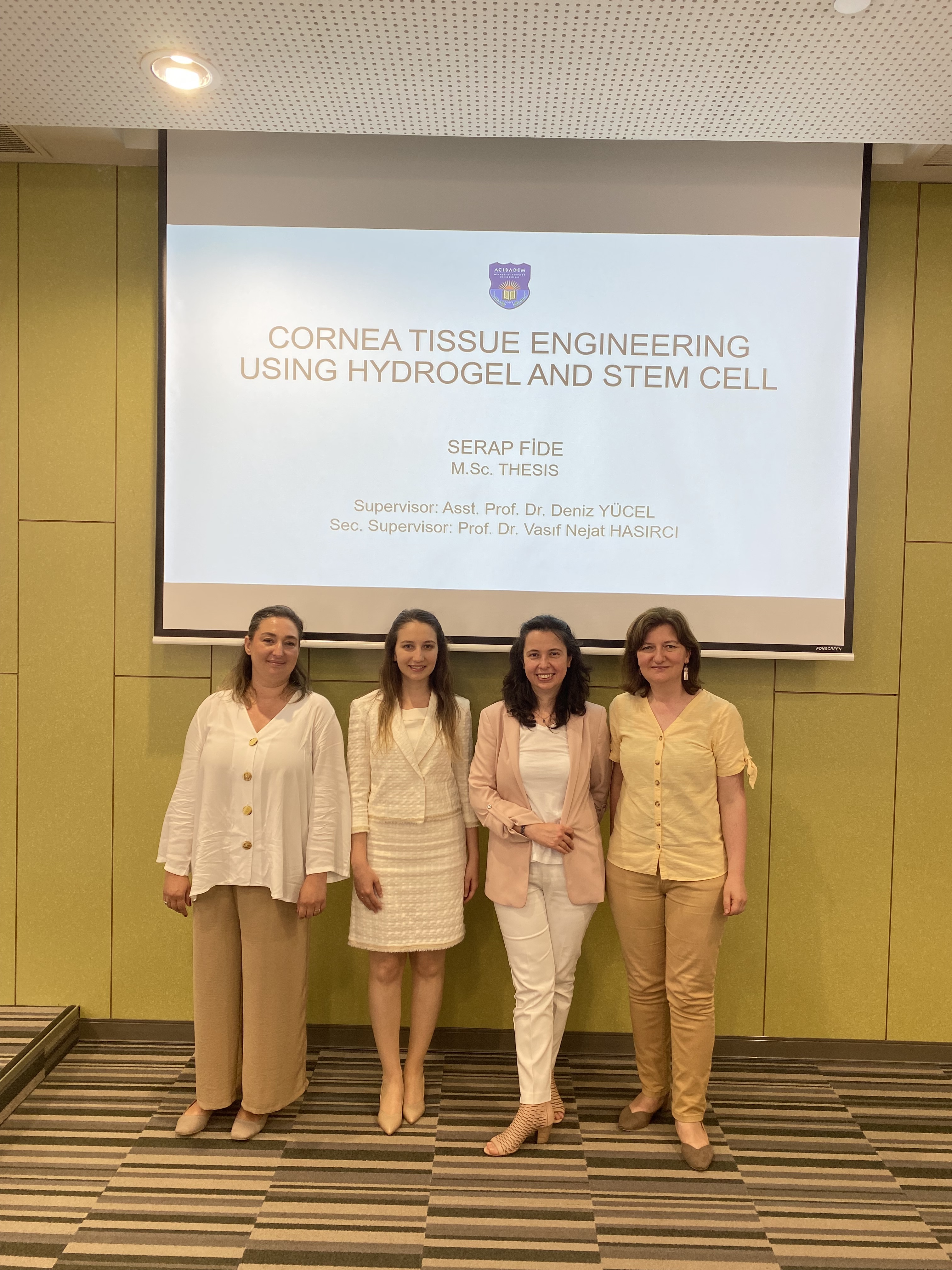 Acıbadem Mehmet Ali Aydınlar Üniversitesi Medikal Biyoteknoloji Yüksek Lisans Programı öğrencisi Serap Fide, Histoloji ve Embriyoloji Bölümü Doktora Öğretim Üyesi Deniz Yücel danışmanlığında ve Biyomedikal Mühendislik Bölümü’nden Prof. Dr. Vasıf Hasırcı eş danışmanlığında gerçekleştirdiği “Hidrojel ve Kök Hücre Temelli Kornea Doku Mühendisliği” başlıklı tezini 28 Haziran 2022 tarihinde başarıyla savunmuştur.