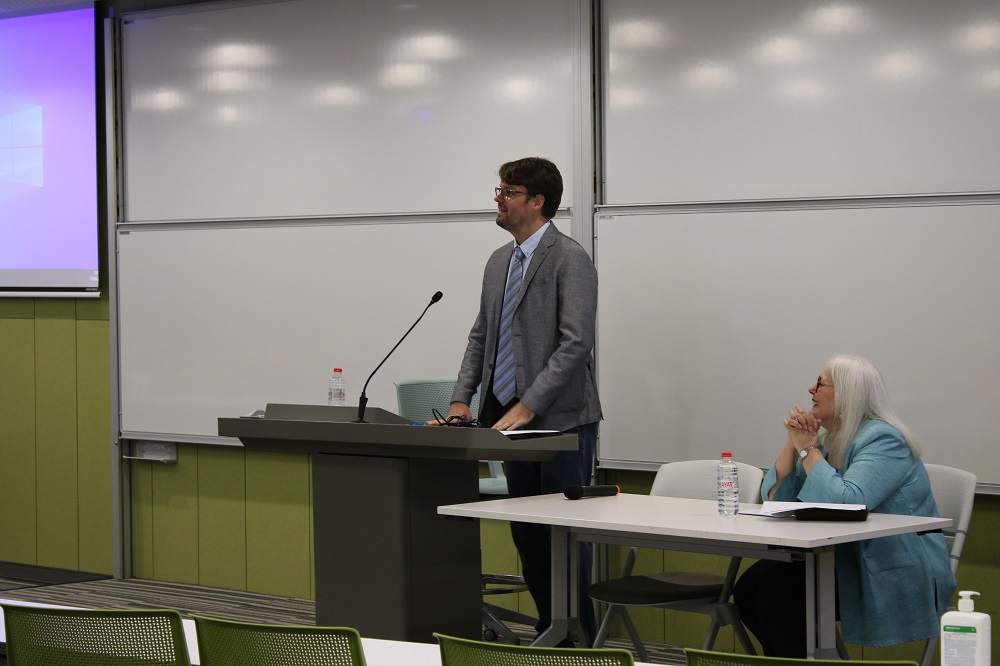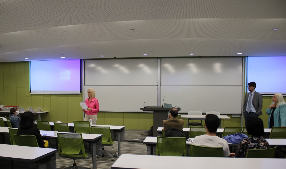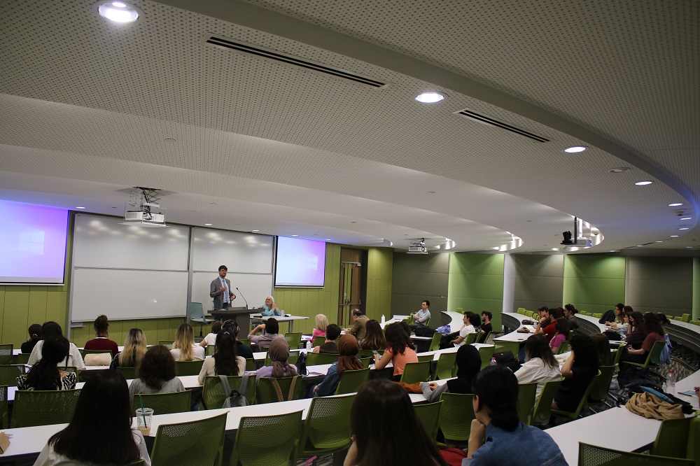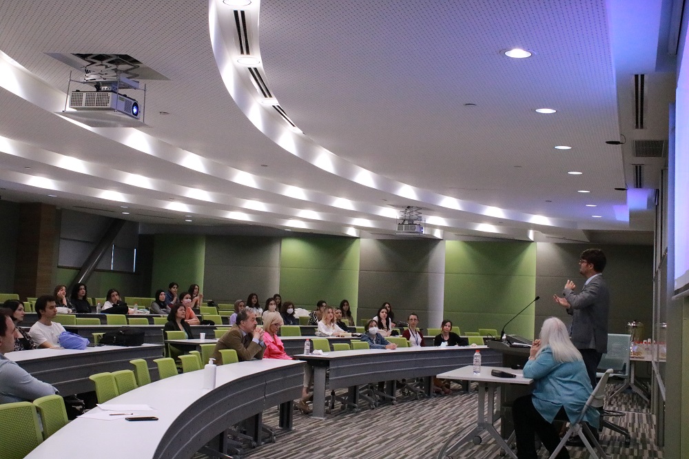 Çok sayıda öğretim üyesi ve öğrencinin izlediği konferansta ardıl çeviri yapıldı.
