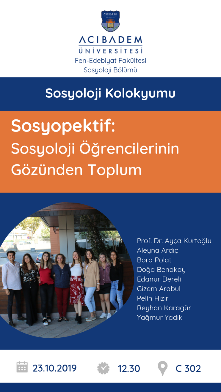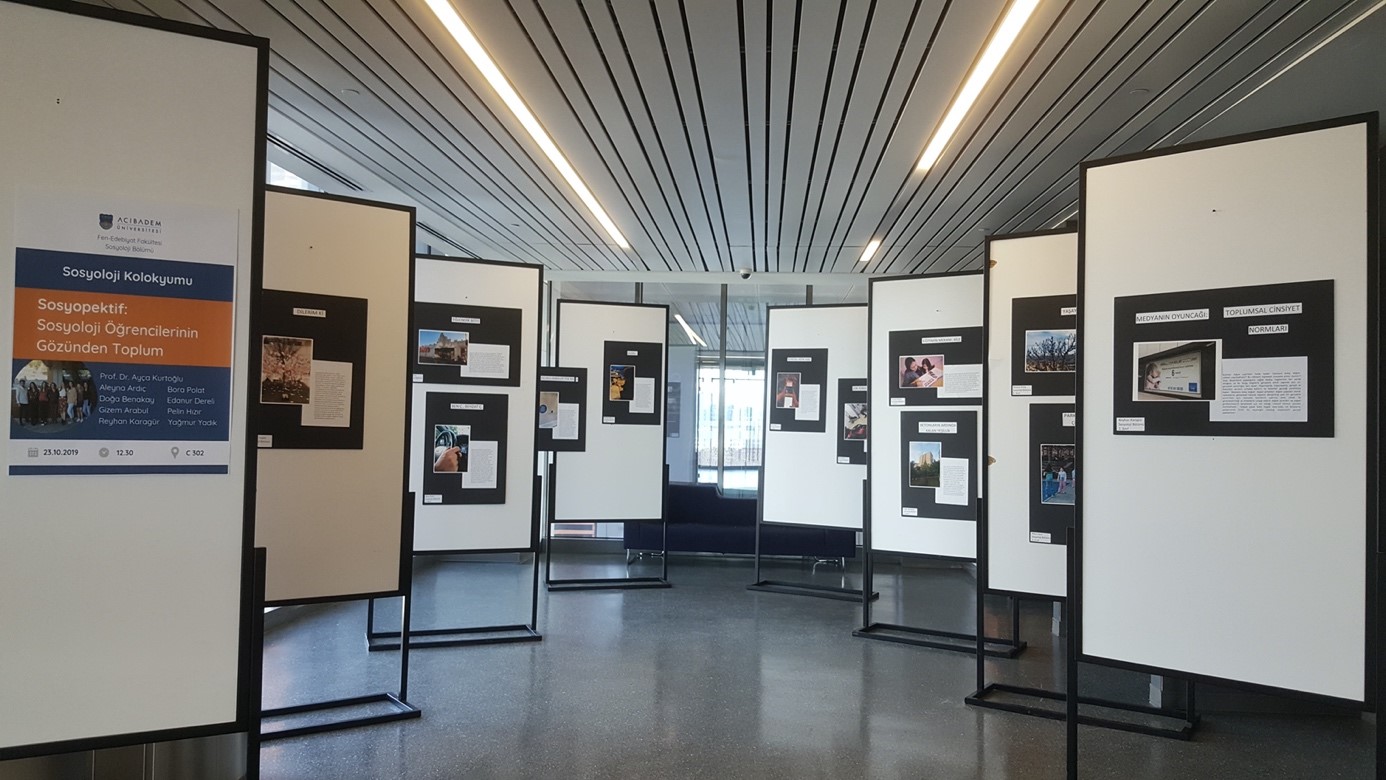 Sosyoloji Bölümümüzün düzenlediği kolokyum, 23 Ekim 2019 tarihinde gerçekleşti. Bu kolokyumun hazırlığı Prof. Dr. Ayça Kurtoğlu’nun 2018-2019 akademik yılında verdiği SOS 101 Sosyolojiye Giriş I ve SOS 102 Sosyolojiye Giriş II dersleri ile SOC 101 Introduction to Sociology I ve SOC 102 Introduction to Sociology II dersleri kapsamında yapıldı. Derslerde “Çalışma Yaşamı”, “Kentsel Yaşam”, “Tabakalaşma ve Toplumsal Sınıflar”, “Toplumsal Kurumlar (aile, eğitim, din, medya vb.)”, “Gündelik Yaşam” gibi sosyolojinin ana konuları işlenirken, dersi alan öğrencilerin her bir ana konunun ana kavramını anlatan fotoğraflar çekmeleri ve fotoğrafın anlattığı kavramı sunan bir metin hazırlamaları sağlandı. İki dönemin sonunda her bir öğrencinin çektiği fotoğraflardan üçü ile bunları anlatan sunumları seçildi. Öğrenciler bunları yeniden gözden geçirerek poster haline getirdiler. Posterler ile bir sergi oluşturuldu.