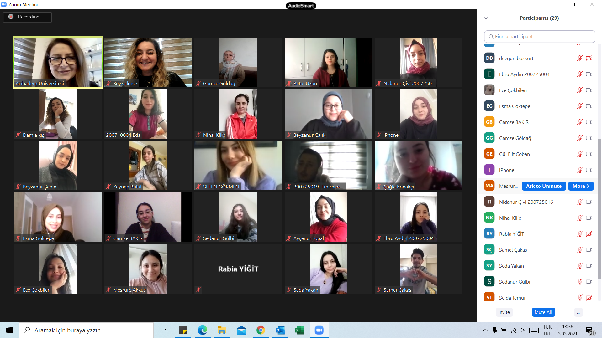 Acıbadem Üniversitesi Sağlık Hizmetleri Meslek Yüksekokulu Tıbbi Dokümantasyon ve Sekreterlik (TDS) Programımızın düzenlediği 2020-2021 Bahar Dönemi Akademik Danışmanlık Toplantısı’nın birincisi zoom üzerinden çevrimiçi olarak, Programın Akademik Danışmanı Öğr. Gör. Aytül Yavuz’un başkanlığında, TDS 1. ve 2. sınıf öğrencilerinin ve Program Uzman Eğitmeni Beyza Köse’nin katılımıyla gerçekleşti.Danışmanlık toplantısında 2020-2021 Bahar Döneminde günümüz pandemi koşullarındaki ders programları bilgilendirmesi ve uygulama derslerinin nasıl olacağı, yönetmelikler, devam-devamsızlık durumları ve takibi, ders ekle-bırak haftası, seçmeli dersler, mail kontrolleri, ders işlenirken KVKK önemi ve kuralları, Yaz Stajları konu başlıklarında bilgilendirme yapıldı. Bahar dönemi boyunca her ayın ilk haftası “Akademik Danışmanlık Toplantısı” yapılması ve bir sonraki toplantıya Kariyer Merkezi sorumlusunun davet edilmesi de kararlaştırıldı.