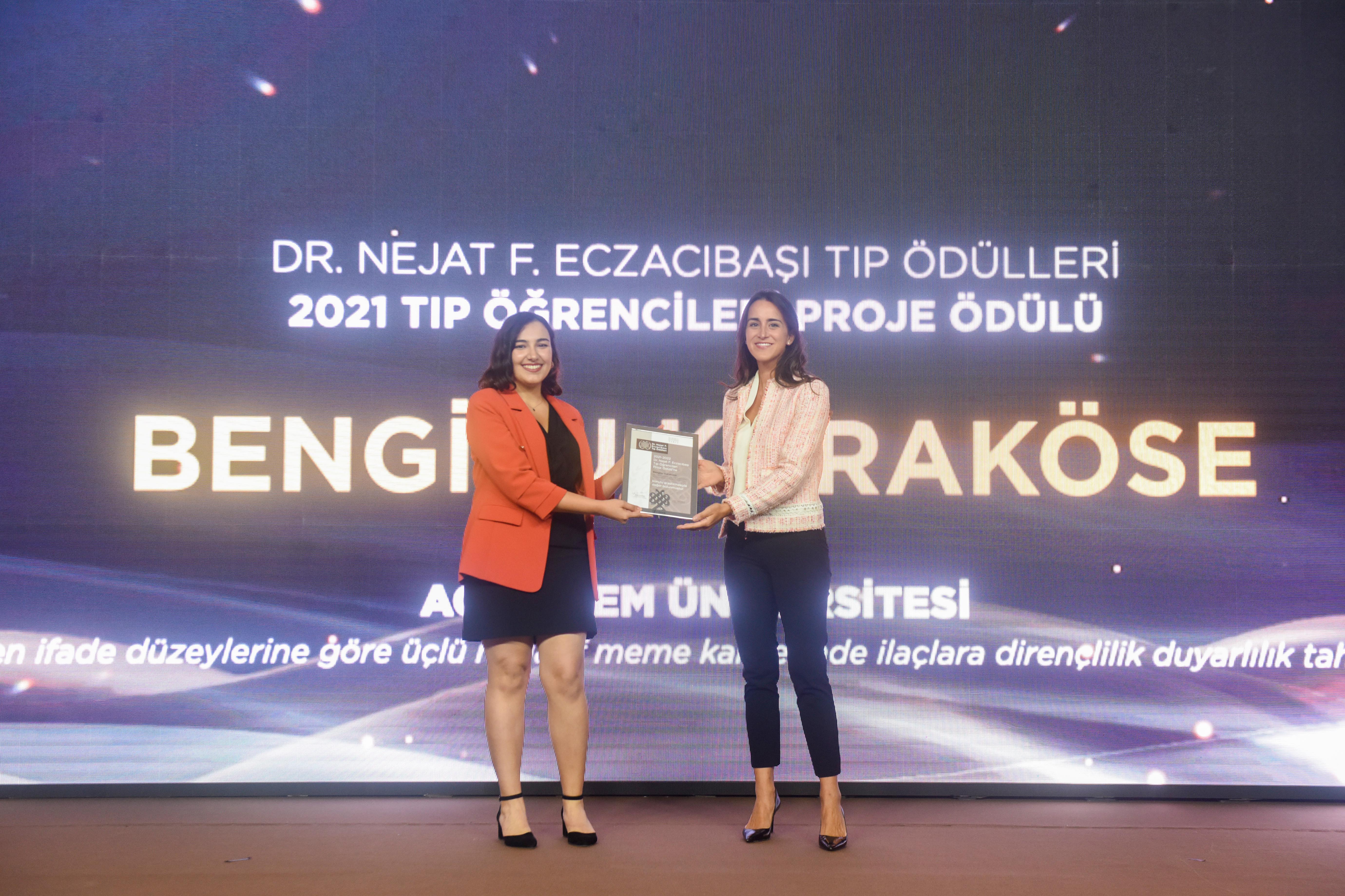 Tıp Fakültemiz 5. sınıf öğrencisi Bengisu Karaköse’nin Tıp Fakültesi Biyoistatistik ve Tıp Bilişimi Anabilim Dalı Başkanımız Uğur Sezerman danışmanlığında yazdığı “Gen İfade Düzeylerine Göre Üçlü Negatif Meme Kanserinde İlaçlara Dirençlilik Duyarlılık Tahmini” isimli projesi, Dr. Nejat F. Eczacıbaşı Tıp Ödülleri 2021 Tıp Öğrencileri Proje Ödülü’ne layık görüldü.