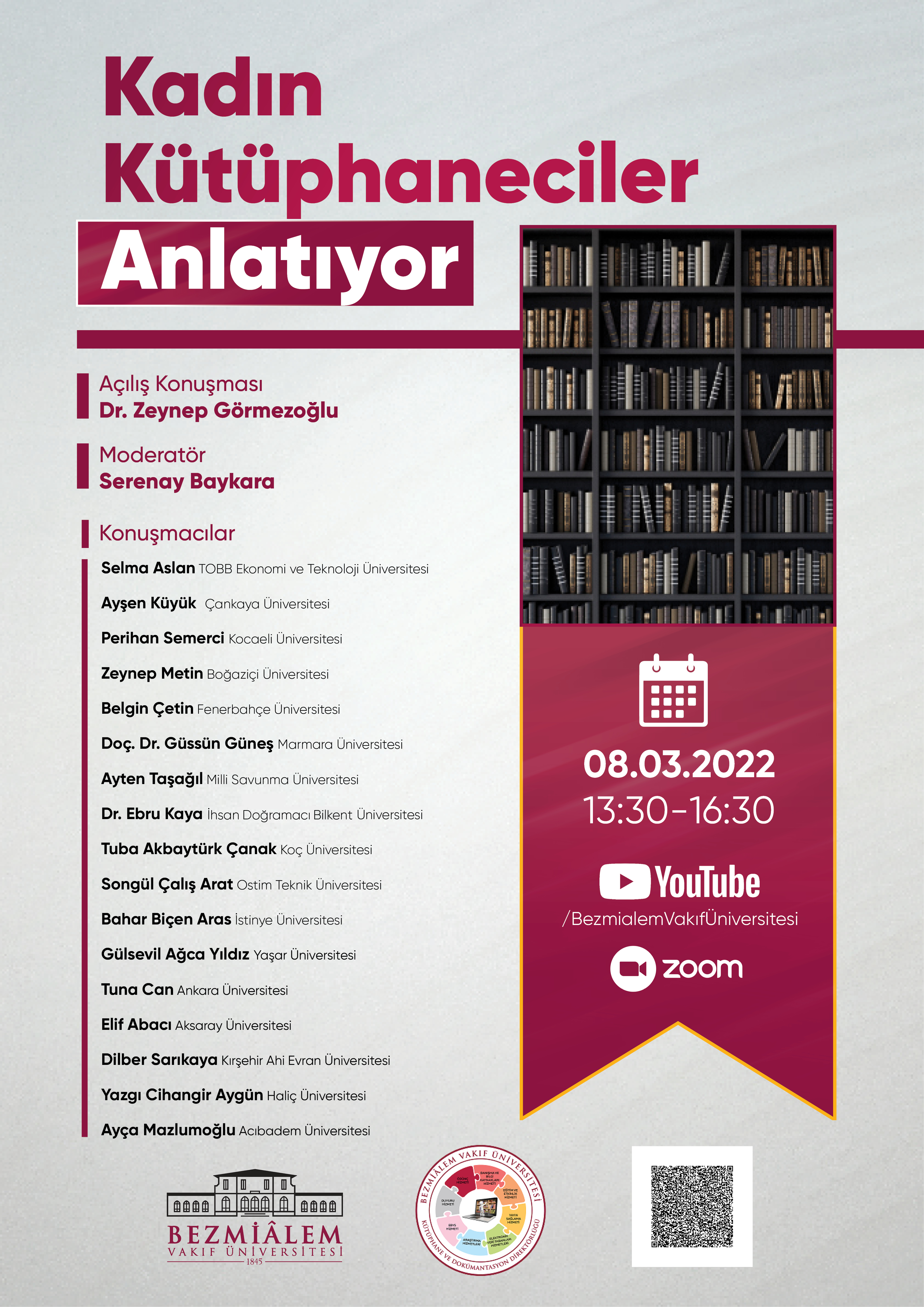 Üniversitemiz Kütüphane ve Elektronik Kaynaklar Müdürü Ayça Aydemir Mazlumoğlu, Bezmialem Vakıf Üniversitesi’nin 8 Mart Dünya Emekçi Kadınlar Günü’ne özel düzenlediği “Kadın Kütüphaneciler Anlatıyor” başlıklı çevrim içi etkinliğe konuşmacı olarak katıldı.