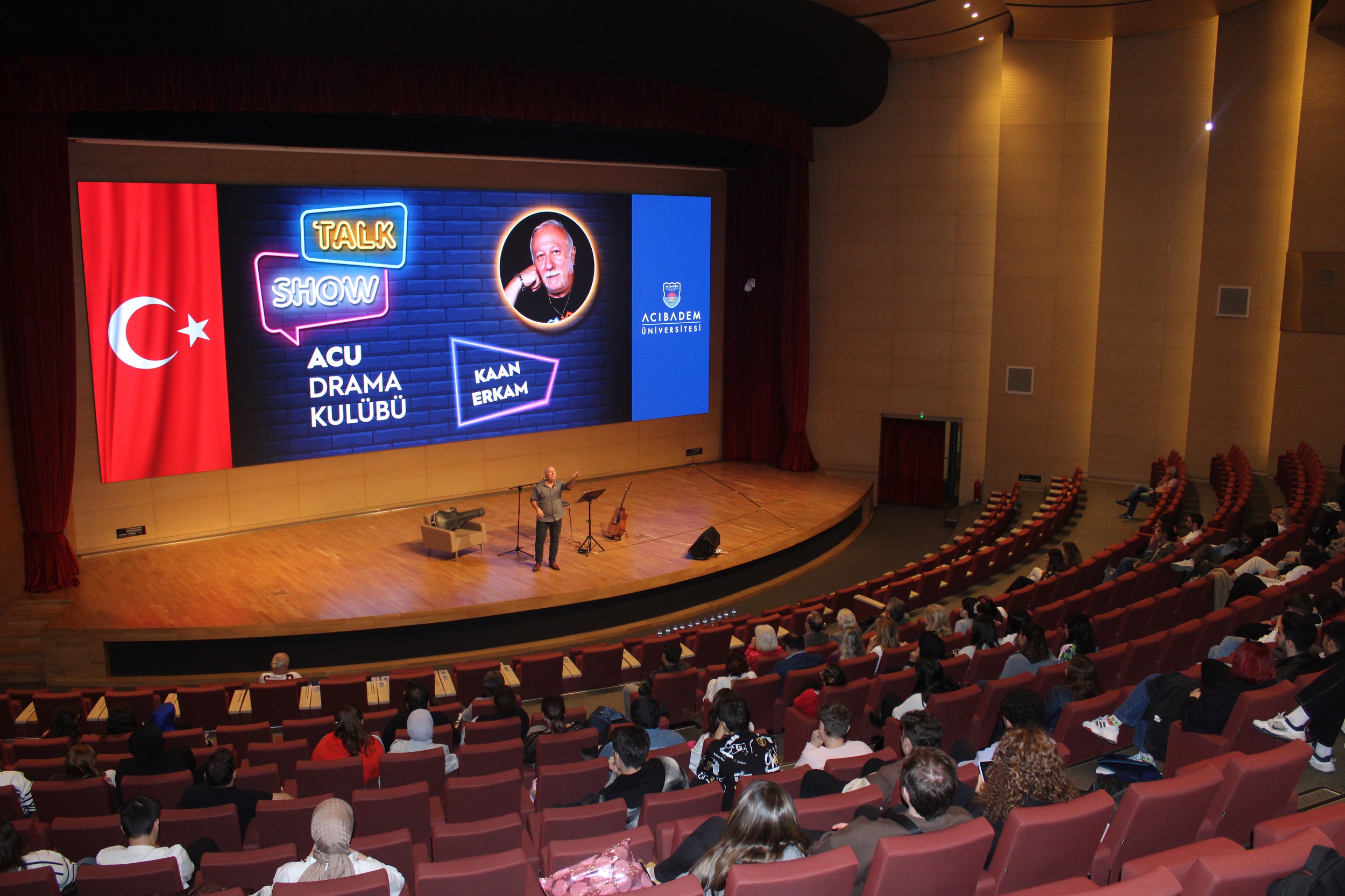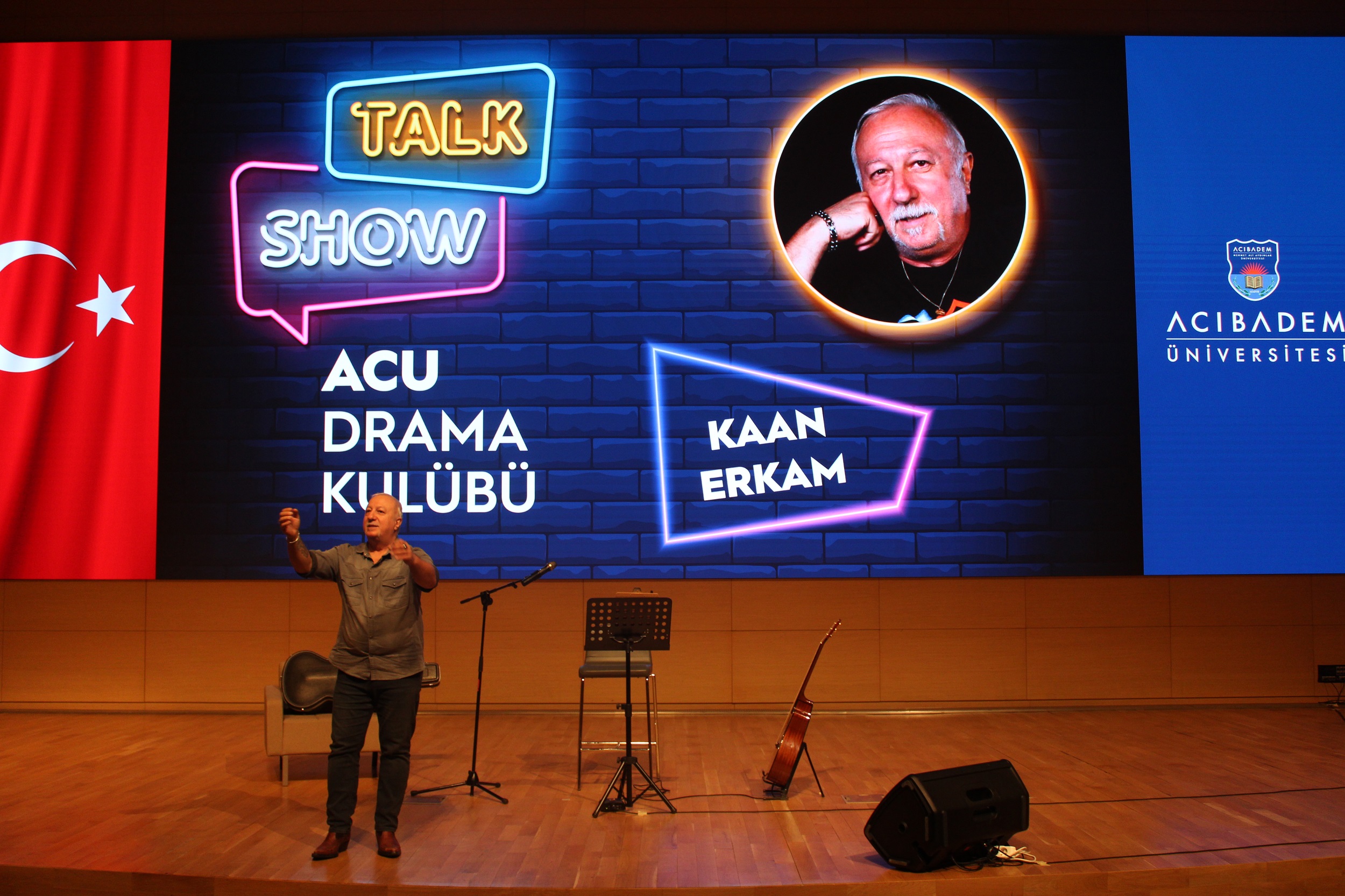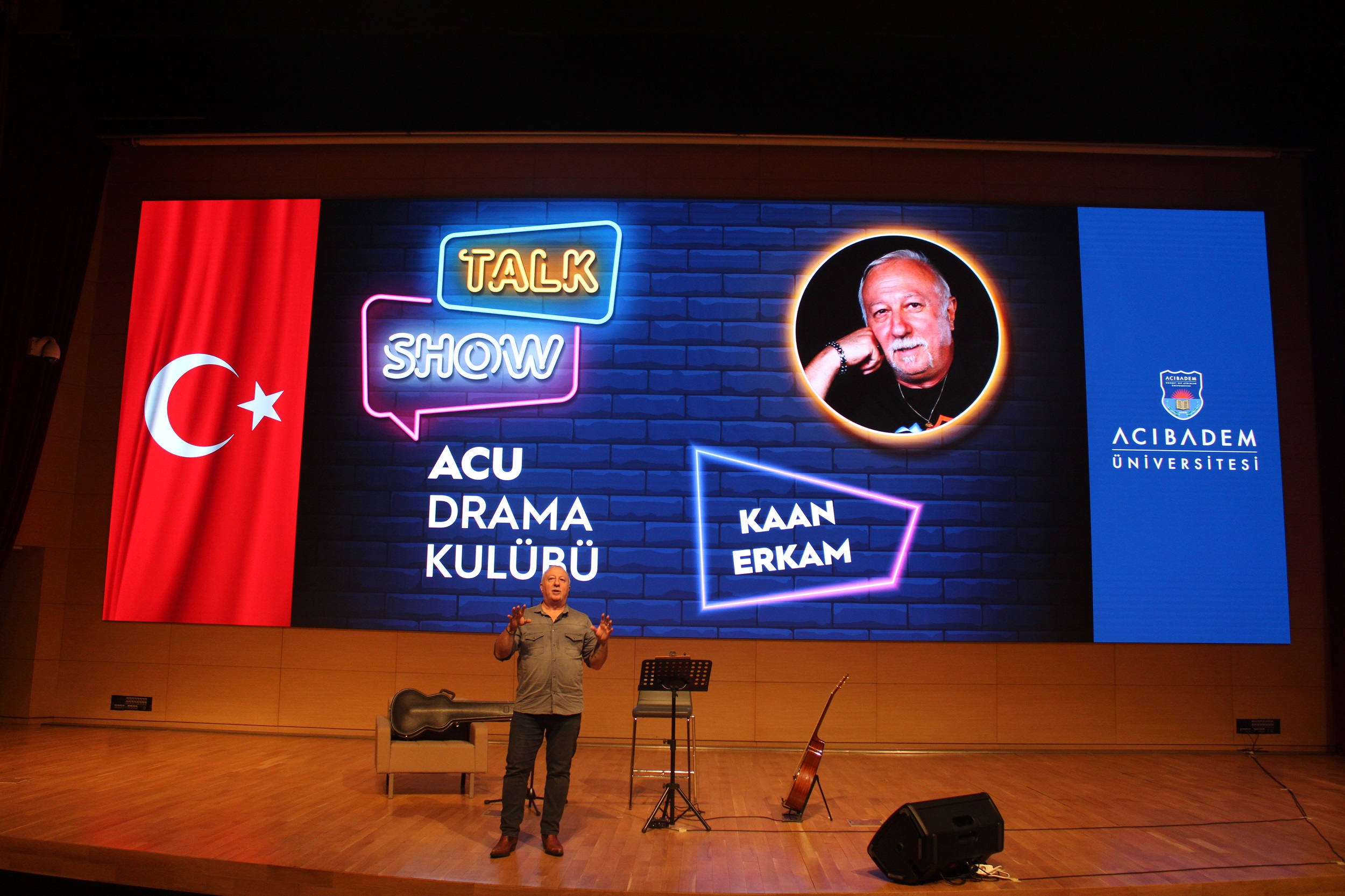 Acıbadem Üniversitesi ACU Drama Kulübü tarafından düzenlenen Kaan Erkam Talk Show, 17 Ekim 2023 tarihinde gerçekleşti. Etkinlikte, Oda Tiyatrosu kurucusu, yönetmen, yazar ve oyuncu olan Kaan Erkam konuk olarak ağırlandı. Akademik, idari kadro ve öğrencilerin katıldığı Talk show’da, Erkam’ın sahnede anlattıkları katılımcılar tarafından ilgi gördü. Etkinlik gitar eşliğinde söylenen şarkılarla sonlandırıldı.