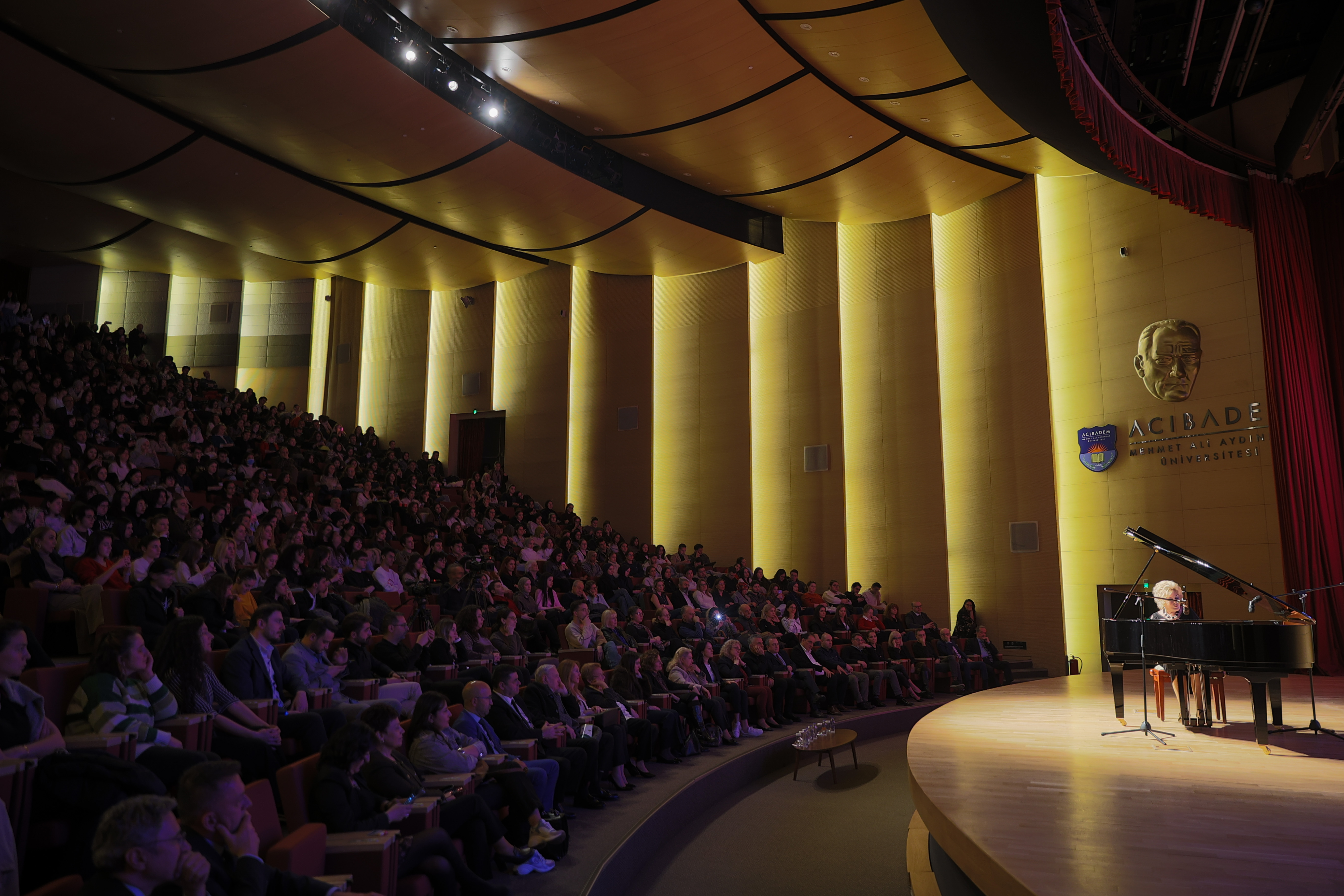 Üniversitemizde ağırlanmaktan büyük onur ve mutluluk duyulan Gülsin Onay, sanatıyla ulusal ve uluslararası alanda kazandığı saygınlığını bir kez daha sahneye taşıdı. Gerçekleştirdiği resitalde izleyicilere yalnızca bir konser değil; derinliği, zarafeti ve ustalığıyla bütünleşen unutulmaz bir sanat deneyimi sundu.