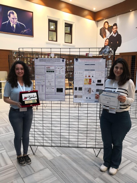 Moleküler ve Translasyonel Biyotıp Yüksek Lisans Programı öğrencimiz Zeynep Hazal Yılmaz ve Medikal Biyoteknoloji Yüksek Lisans Programı öğrencimiz Burcu Taluğ Uluslararası Moleküler Tıp Sempozyumu’nda en iyi poster ve en iyi üçüncü poster ödüllerine layık görüldü.Fen Bilimleri Enstitüsü Moleküler ve Translasyonel Biyotıp Yüksek Lisans Programı öğrencimiz Zeynep Hazal Yılmaz, 16-18 Mayıs 2019 tarihleri arasında İstanbul'da gerçekleştirilen Uluslararası Moleküler Tıp Sempozyumu’nda (International Molecular Medicine Symposium by the Bosphorus) en iyi poster ödülüne layık görüldü. Yılmaz, "Sitotoksik ilaçlara karşı olan direnç mekanizmalarının genom çapında taranması" başlıklı yüksek lisans araştırmasını Dr. Öğr. Üyesi Emre Deniz danışmanlığında gerçekleştirdi.Sağlık Bilimleri Enstitüsü Medikal Biyoteknoloji Yüksek Lisans Programı öğrencimiz Burcu Taluğ da, aynı kongrede en iyi üçüncü poster ödülüne layık görüldü. Taluğ, "5,10-metilentetrahidrofolat redüktaz C677T polimorfizminin mezankimal kök hücreleri üzerindeki etkilerinin CRISPR/Cas9 gen düzenleme aracıyla araştırılması" başlıklı yüksek lisans araştırmasını Dr. Öğr. Üyesi Zeynep Tokcaer Keskin ve Dr. Öğr. Üyesi Emre Deniz danışmanlıklarında gerçekleştirdi.Öğrencilerimizi ve danışmanlarını kutlar, başarılarının devamını dileriz.